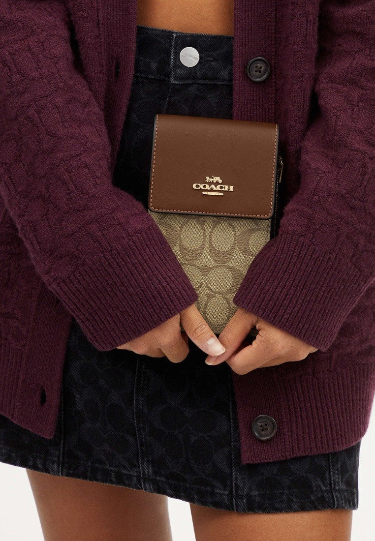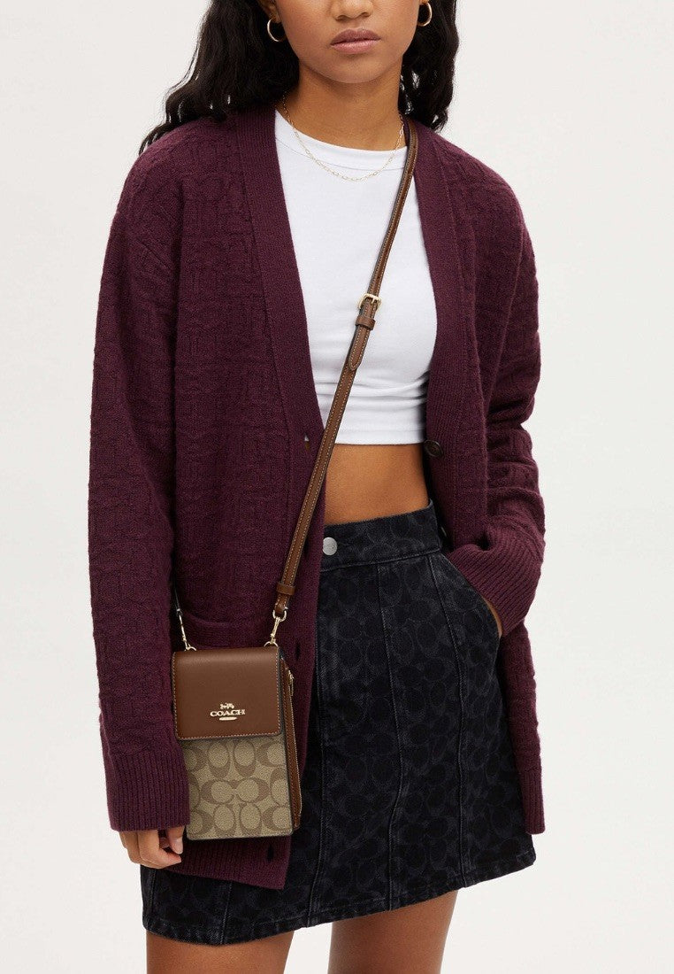 North South Phone Crossbody In Signature Canvas Khaki Saddle 2