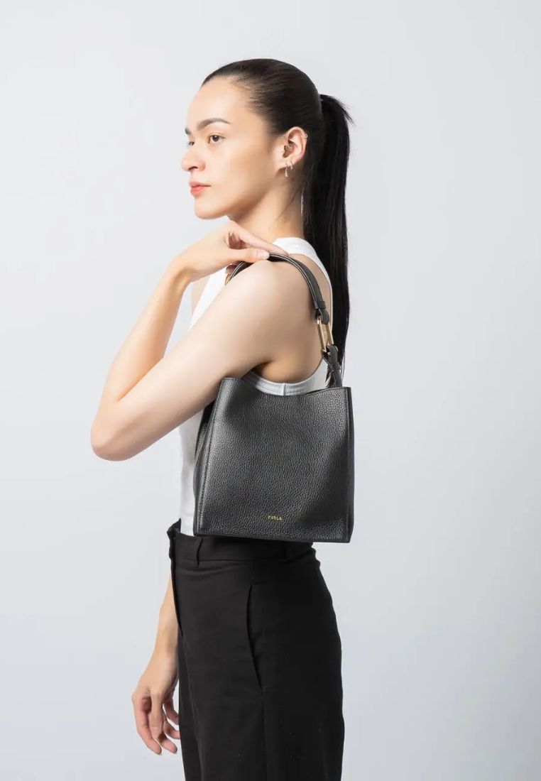Simple and elegant lines for this new Furla Nuvola bucket bag. Soft and lightweight, it is styled in fine grained leather with a rich and luxurious feel. The mini size is comfortable to carry whether in the hand or on the shoulder thanks to the adjustable buttoned handle, made distinctive by the Arcosfera hardware that brings the iconic Furla Arch logo together with the original round element of the brand. Furla logo punched on the back Celebrate fashion with our Furla Nuvola line, launched in celebration of Milan Fashion Week 2024.