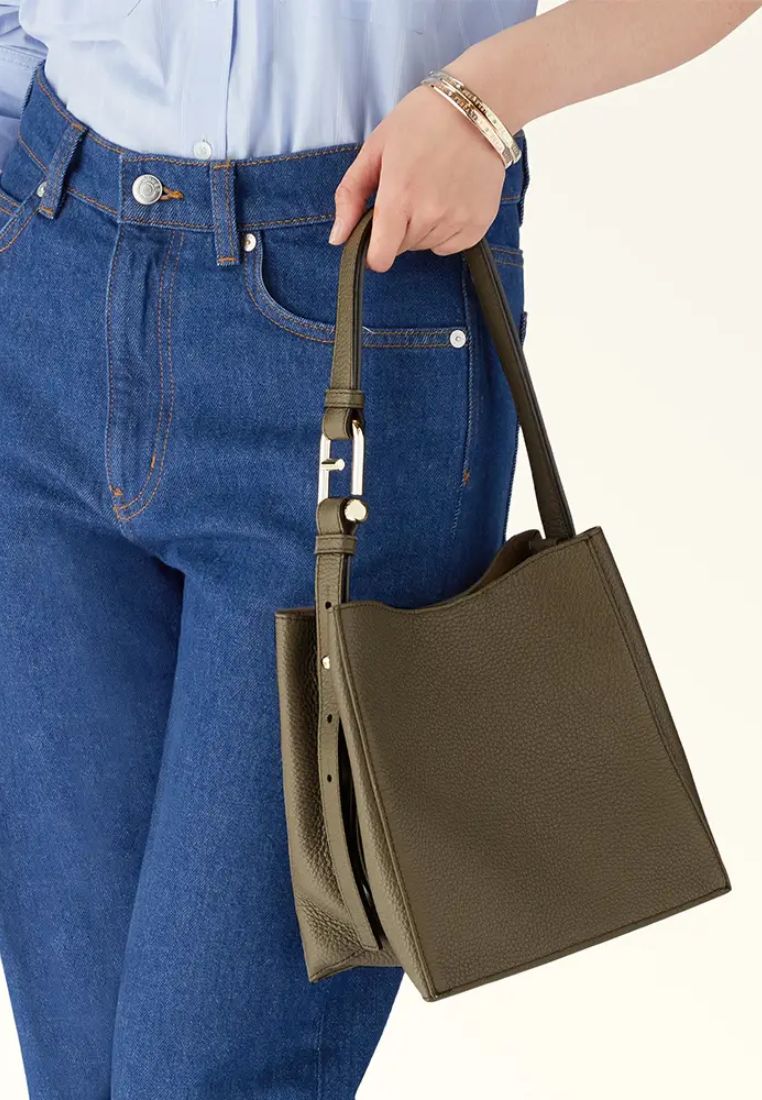 Simple and elegant lines for this new Furla Nuvola bucket bag. Soft and lightweight, it is styled in fine grained leather with a rich and luxurious feel. The mini size is comfortable to carry whether in the hand or on the shoulder thanks to the adjustable buttoned handle, made distinctive by the Arcosfera hardware that brings the iconic Furla Arch logo together with the original round element of the brand. Furla logo punched on the back Celebrate fashion with our Furla Nuvola line, launched in celebration of Milan Fashion Week 2024.