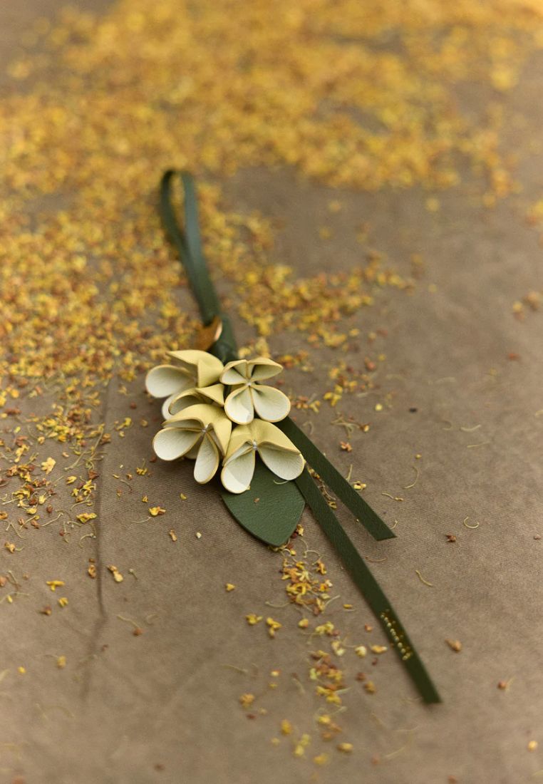 During the Chinese Moon Festival, it is a traditional custom to admire osmanthus blossoms, cherished as symbols of good luck and prosperity. Our Osmanthus Charm is crafted to mirror the flower's natural form, with handmade, three-dimensional sewing and cutting techniques that capture the authentic beauty of Osmanthus fragrans.