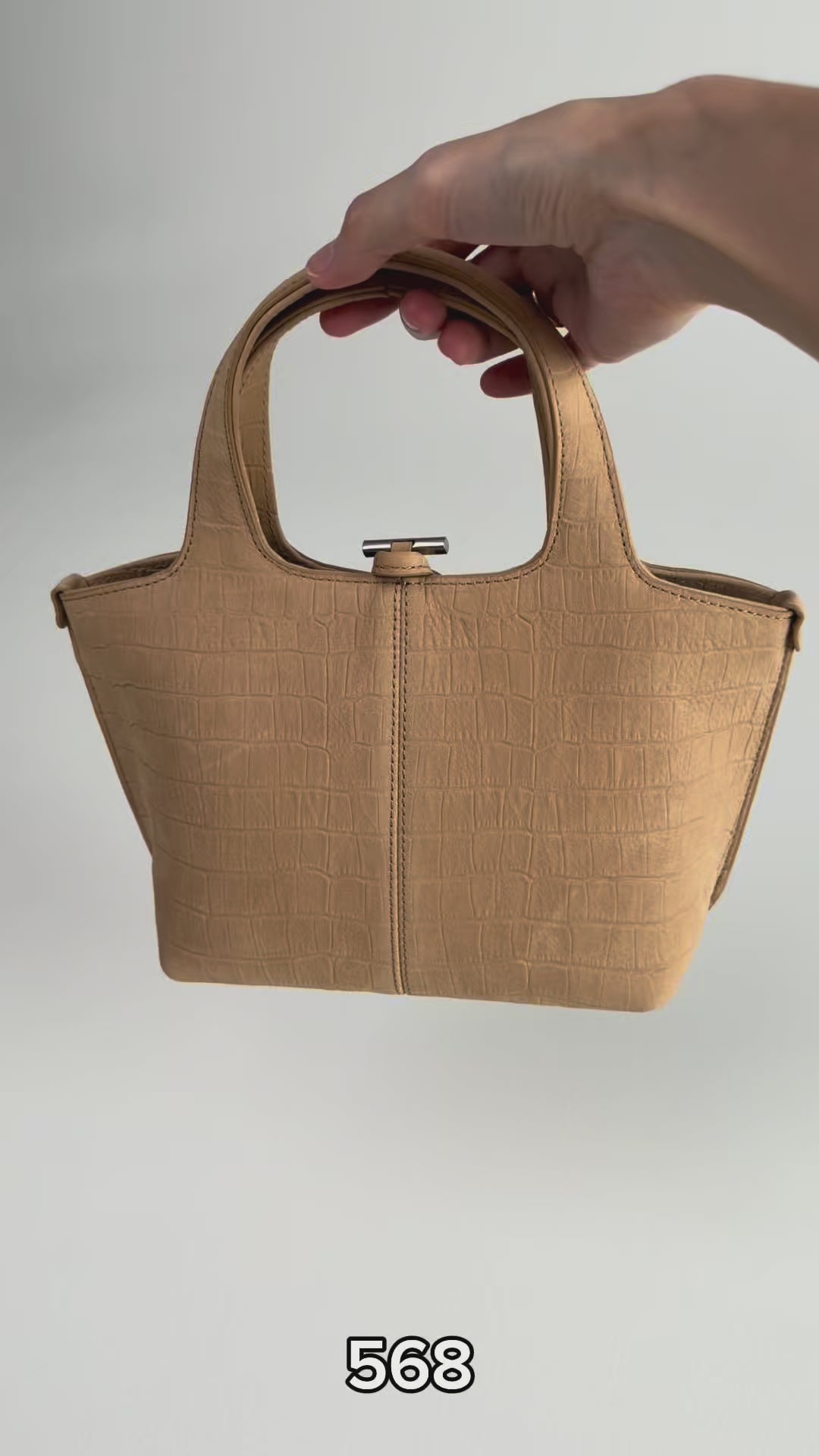 This Panier petit bag features densely laid stitching on a simple, basket-like silhouette. A crocodile pattern is delicately engraved onto nubuck leather, enhancing the matte yet velvety texture and adding a touch of luxury. The crocodile-patterned nubuck leather complements the simple silhouette of the Panier tote bag, creating a soft touch and a defined silhouette. While the existing "Pattern Black" option emphasized a dressy, formal mood with its glossy leather sheen, the new "Nubuck Pattern Brown / Sand" option seamlessly blends into everyday life with its warm matte tone and soft feel, creating a casual, modern look. Even with a familiar silhouette and pattern, the contrast of texture and color creates a unique atmosphere, making it ideal for a variety of styles in the coming season.