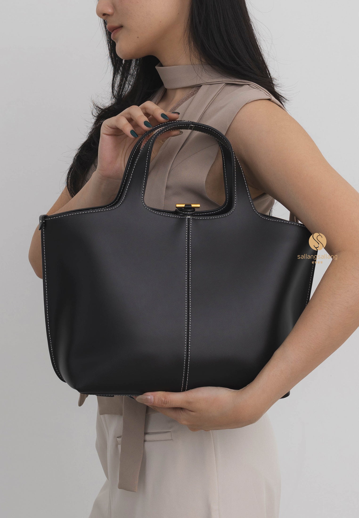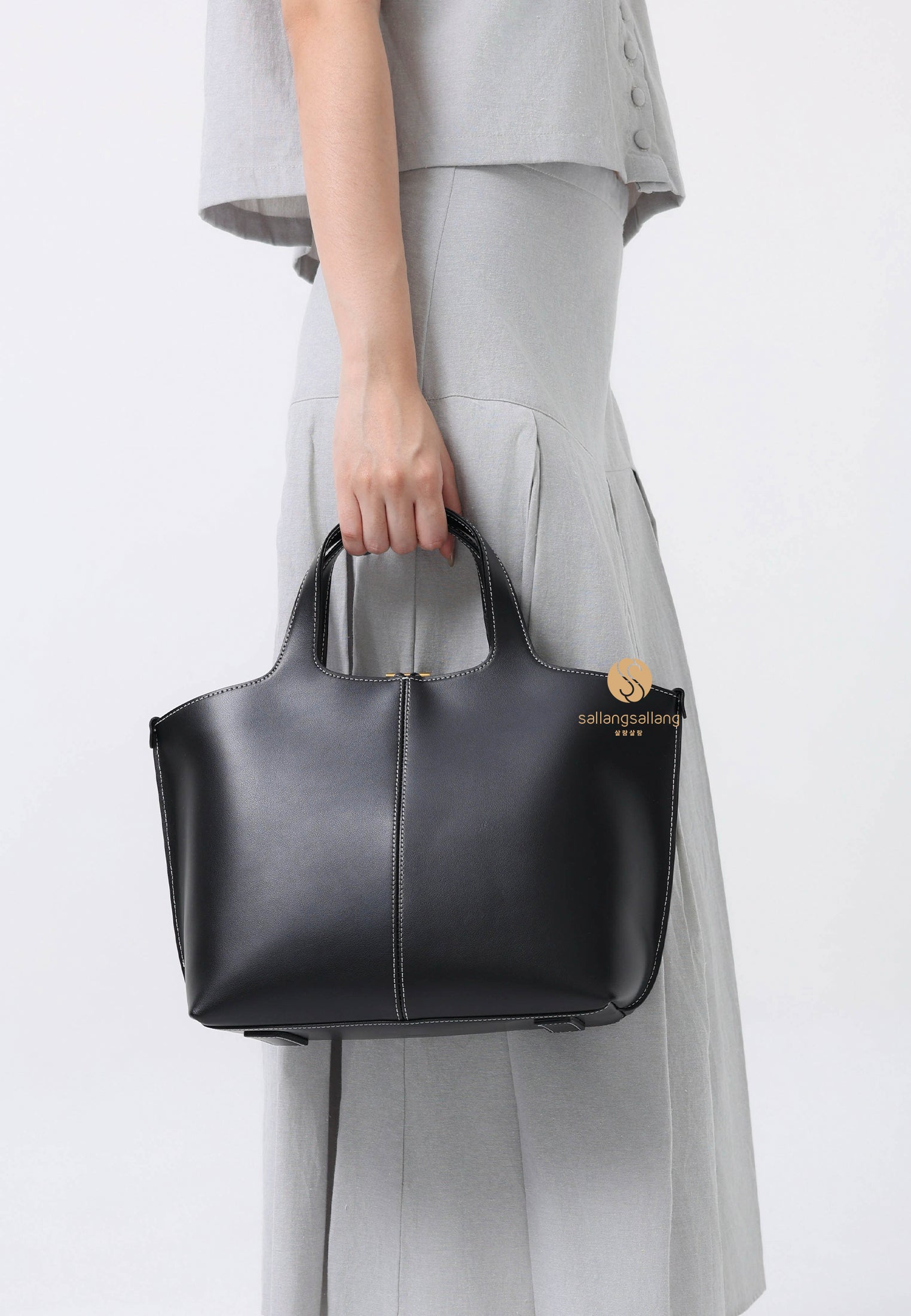 Stitches placed on leather harmoniously resemble baskets. It's a Panier Tote Bag. It has a structure that opens and closes using a leather ring on the back, and the subtle gold decoration on the front is The logo of Atelier de Lumen is engraved to add classicality.The relaxed interior has open pockets and zipper pockets on the front and back for practical storage. It is possible. It is a hand-wound top handle that goes well with any daily outfit.