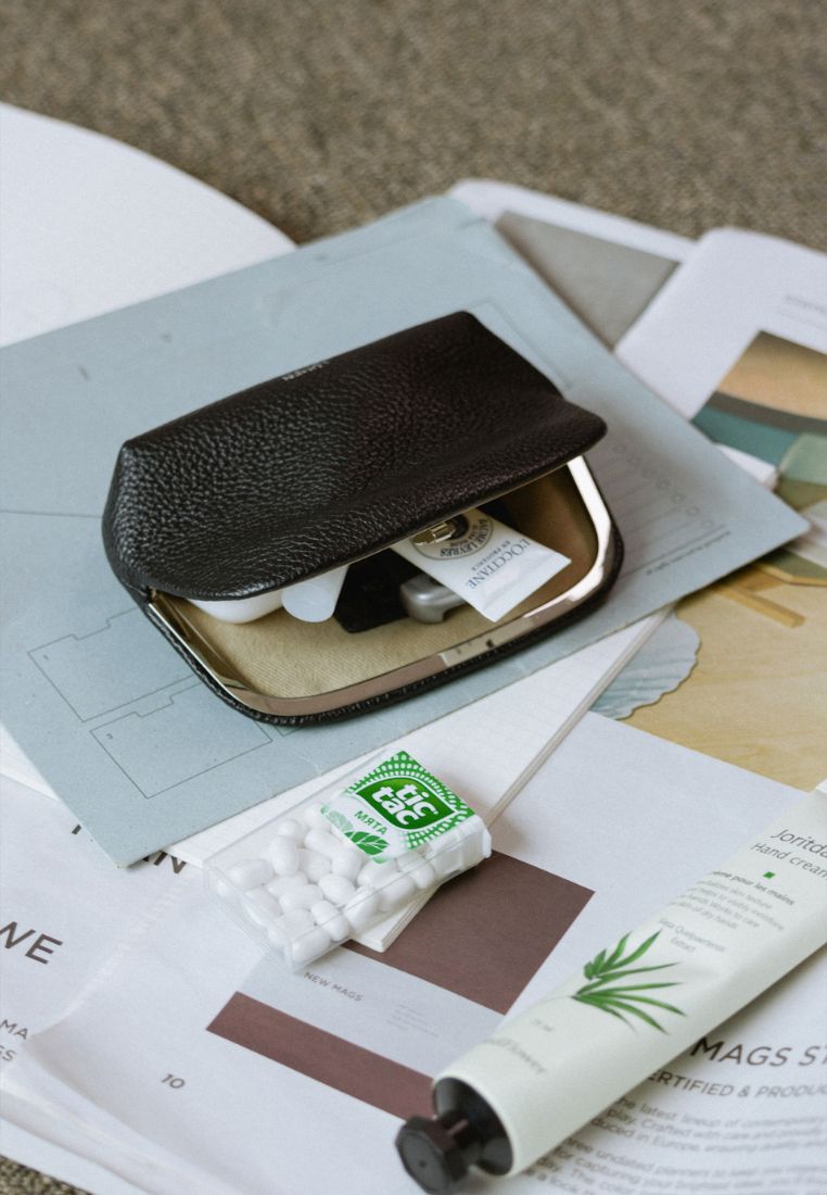 The Pave Frame Pouch is soft and sturdy using the same natural embossed leather as the Pave bag.Minimal asymmetric frame decoration adds a layer of luxury. You can also store enough everyday belongings such as lipstick and AirPods, and you can store bills and coins leisurely, making it easier to travel.