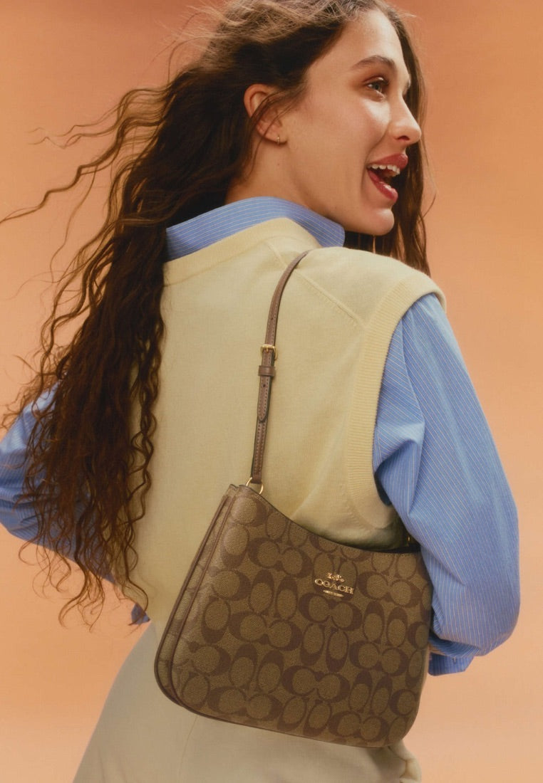 Penelope Shoulder Bag In Signature Canvas Khaki Saddle 2