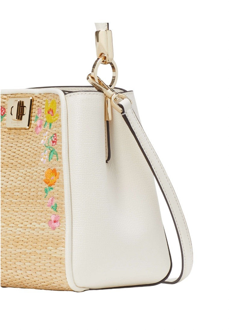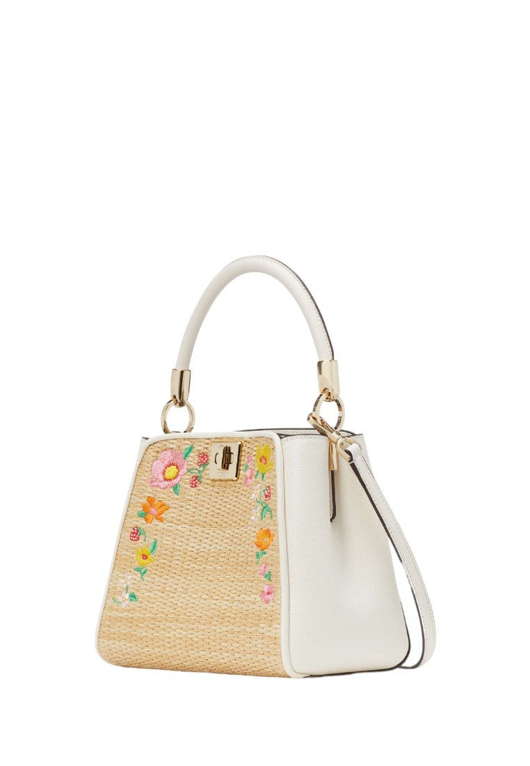 Phoebe Embroidered Straw Top Handle Satchel Meringue Multi
