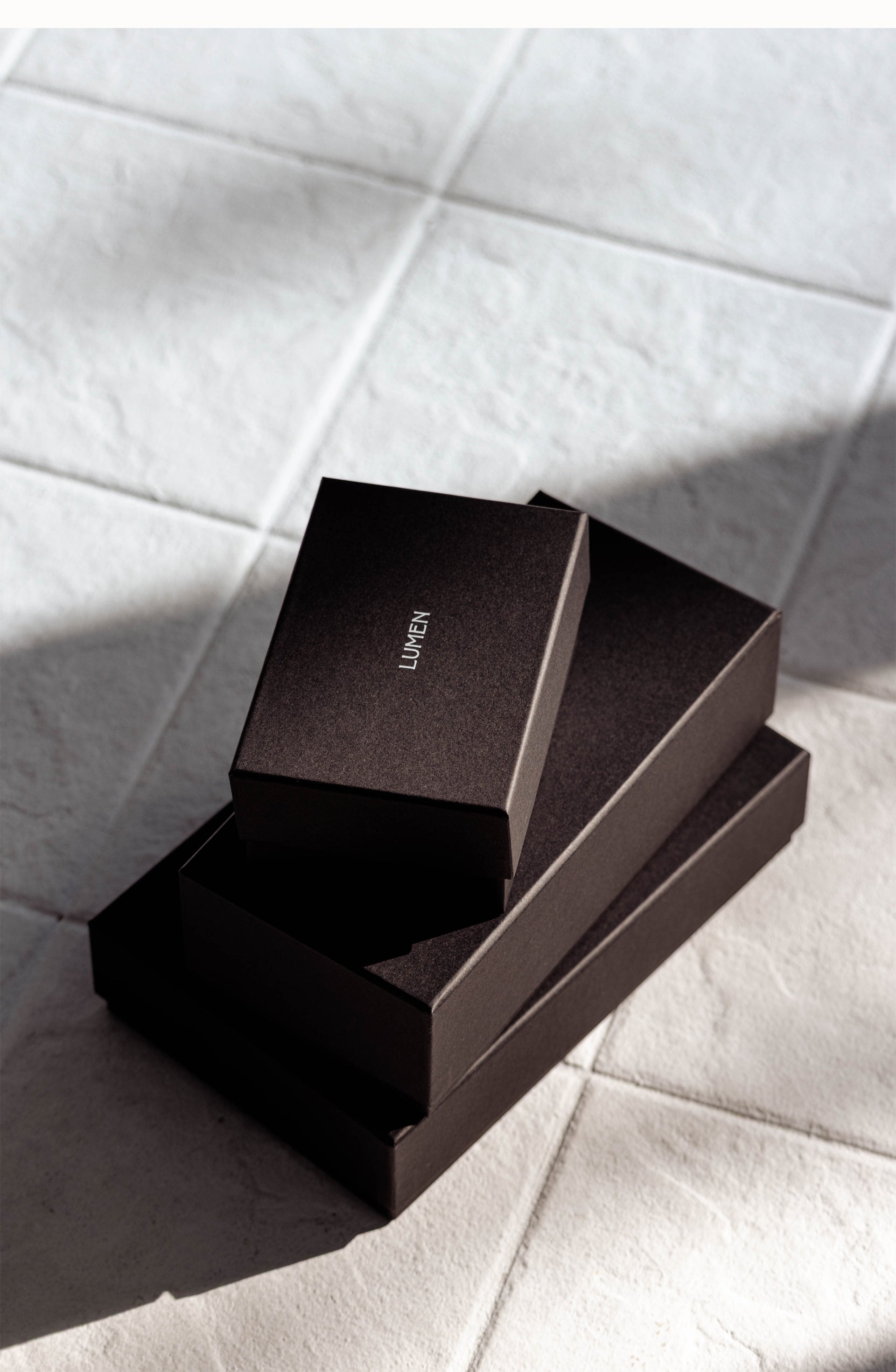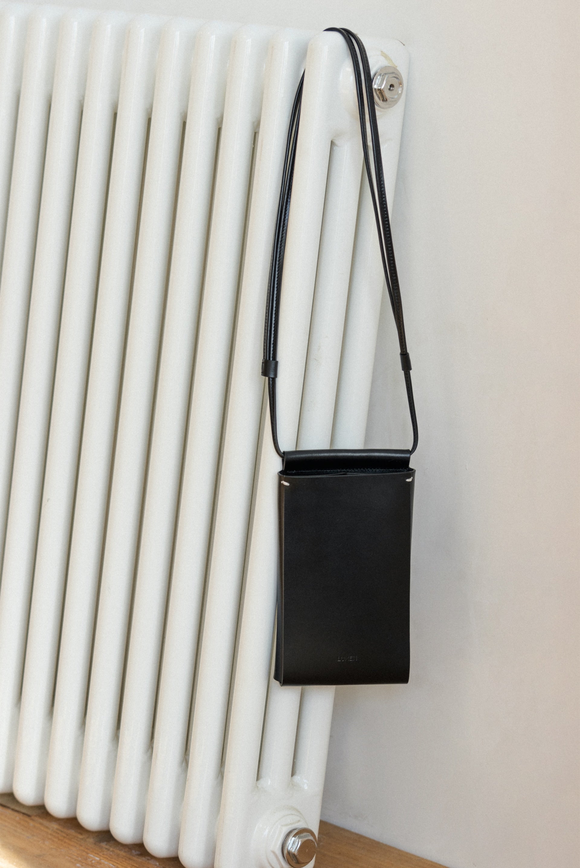 - Minimal design made with a single piece of leather folded and minimal stitching