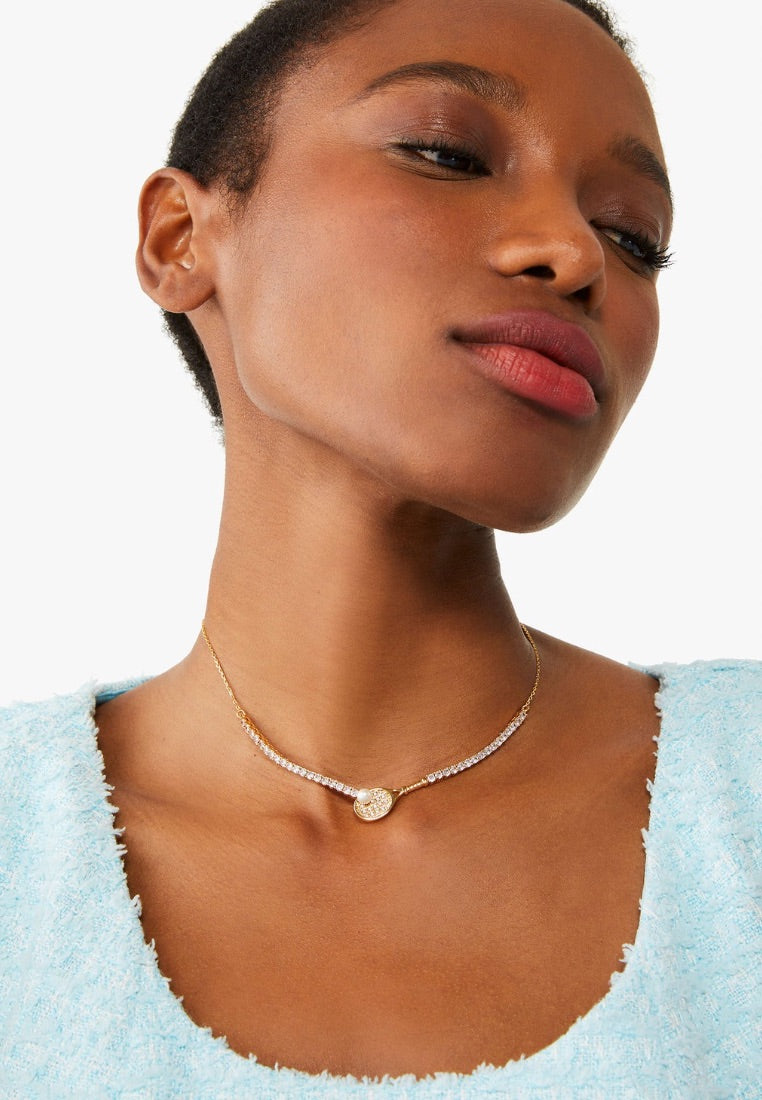 Queen Of The Court Tennis Necklace Clear Gold