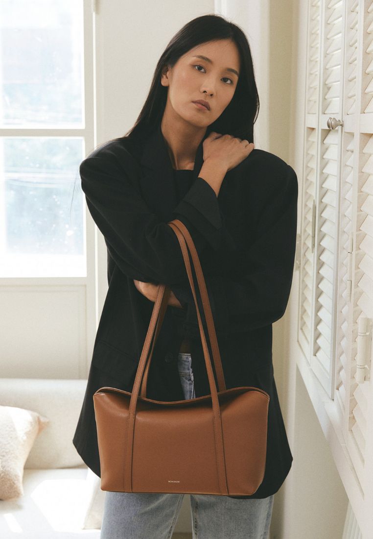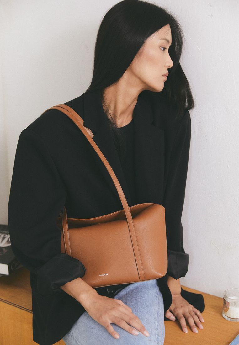 This bag has a practical shape that can be worn in two ways and a stylish long shoulder strap for a comfortable fit.