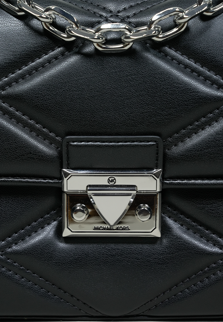 Serena Small Quilted Faux Leather Crossbody Bag Black Silver