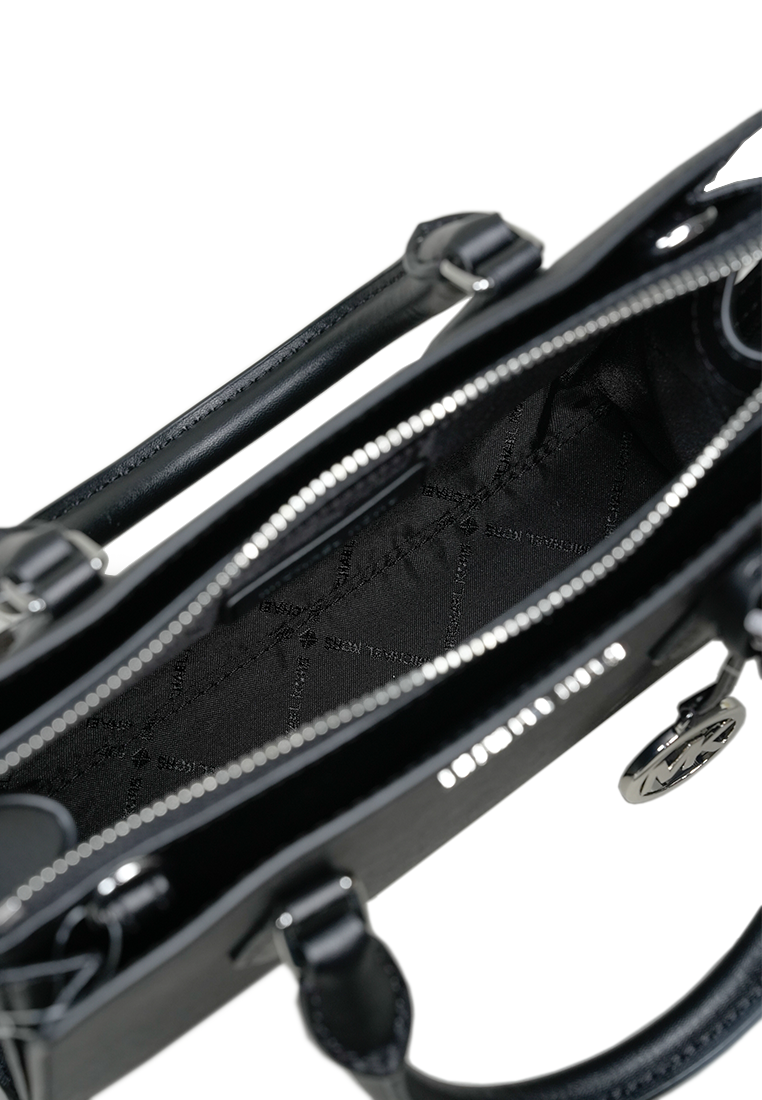 Sheila Small Faux Saffiano Leather Satchel Black