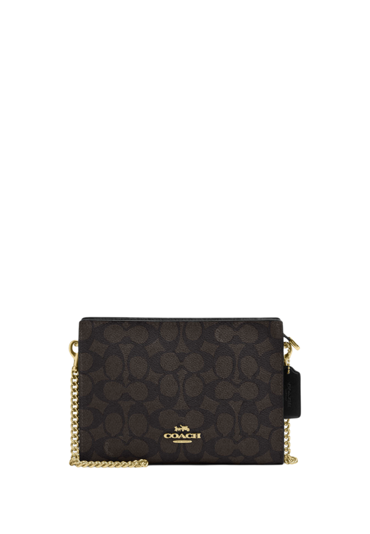 Slim Crossbody Bag In Signature Canvas Gold Walnut Black