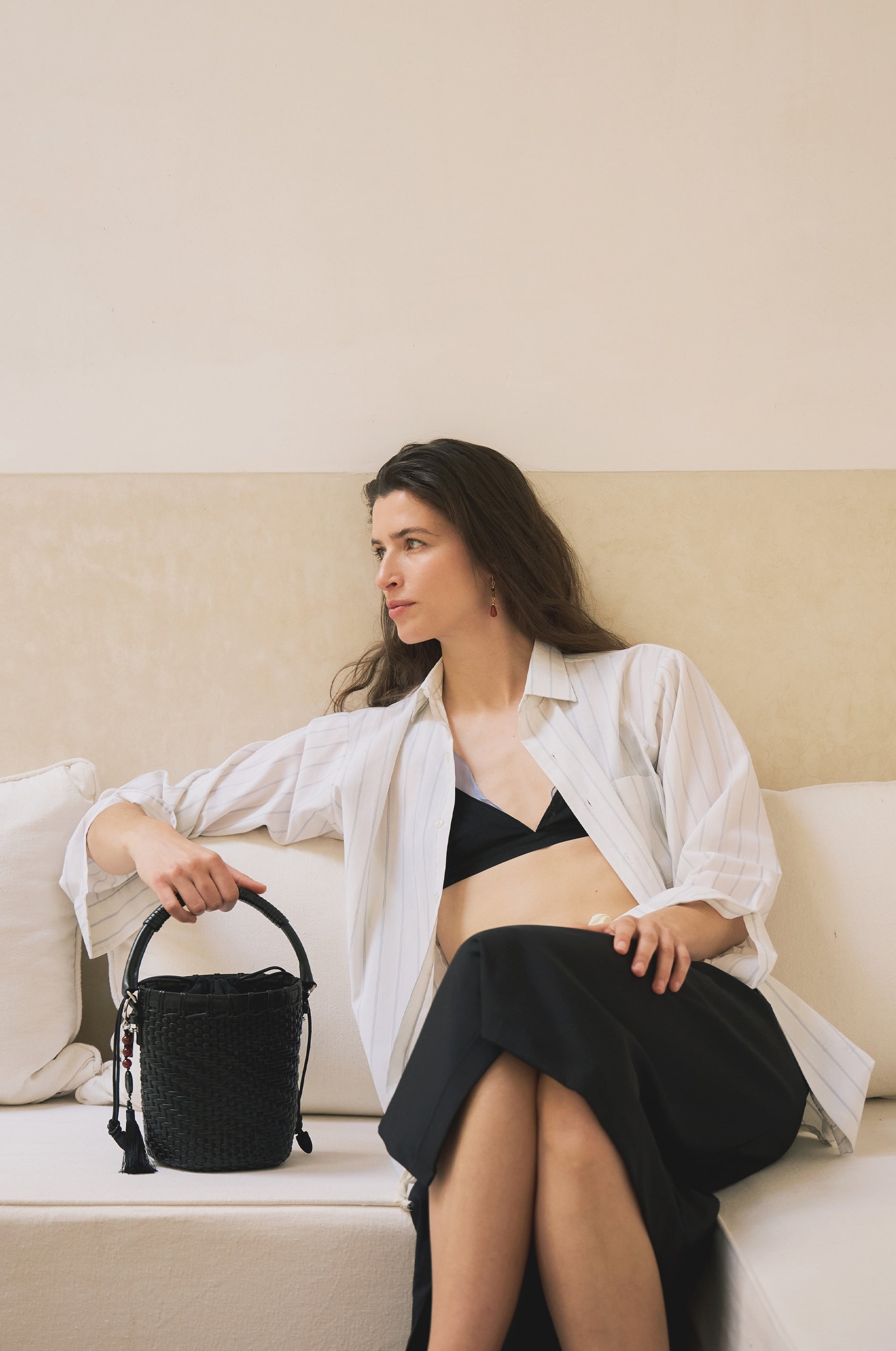 This is a tassel charm that harmonizes red natural stone Jamanok, black gemstone, and black tassels that fall gently. The simple yet sensual color combination using black and red is not restricted by specific colors or textures, and naturally adds a subtle point wherever it is matched. It is a charm decoration that is good to use as a daily item, as it uses a ring-type hook that can be easily hung and taken off anywhere, and is completed with a well-structured composition and balanced details.