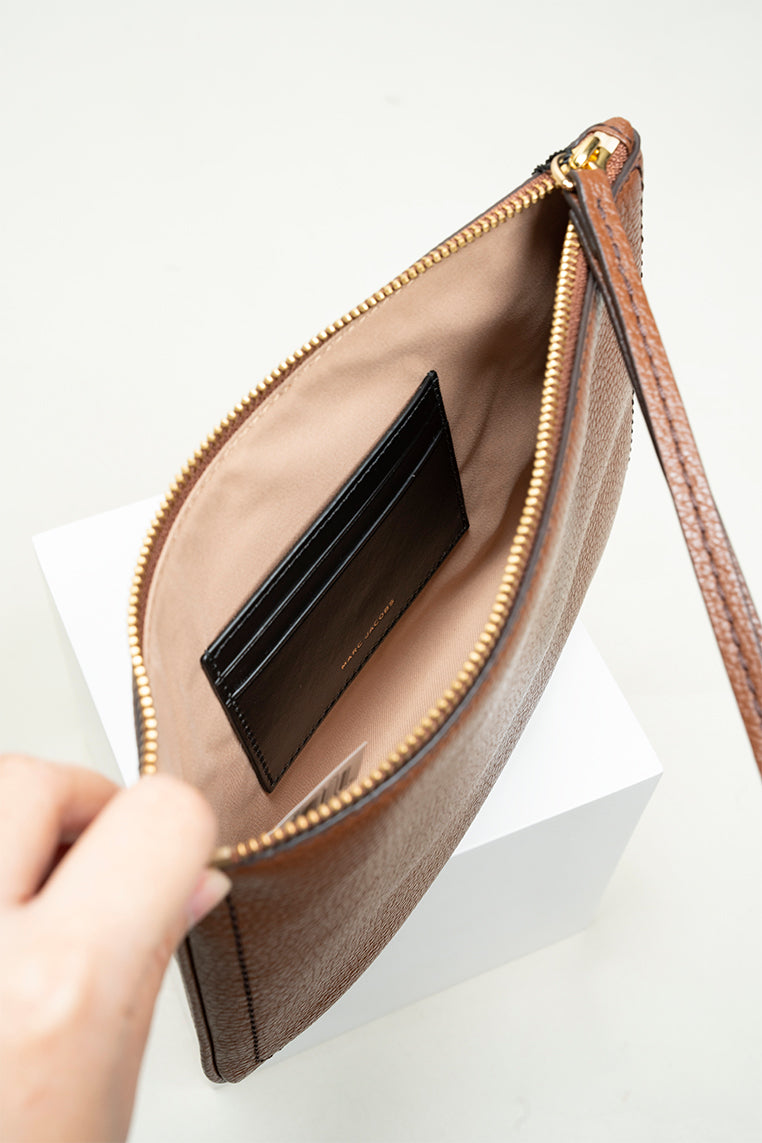 Featuring luxe pebbled leather & a classic silhouette, this Marc Jacobs The Groove Leather Wristlet Clutch is perfectly sized to fit your cards, phone, keys, powder & a lip gloss.