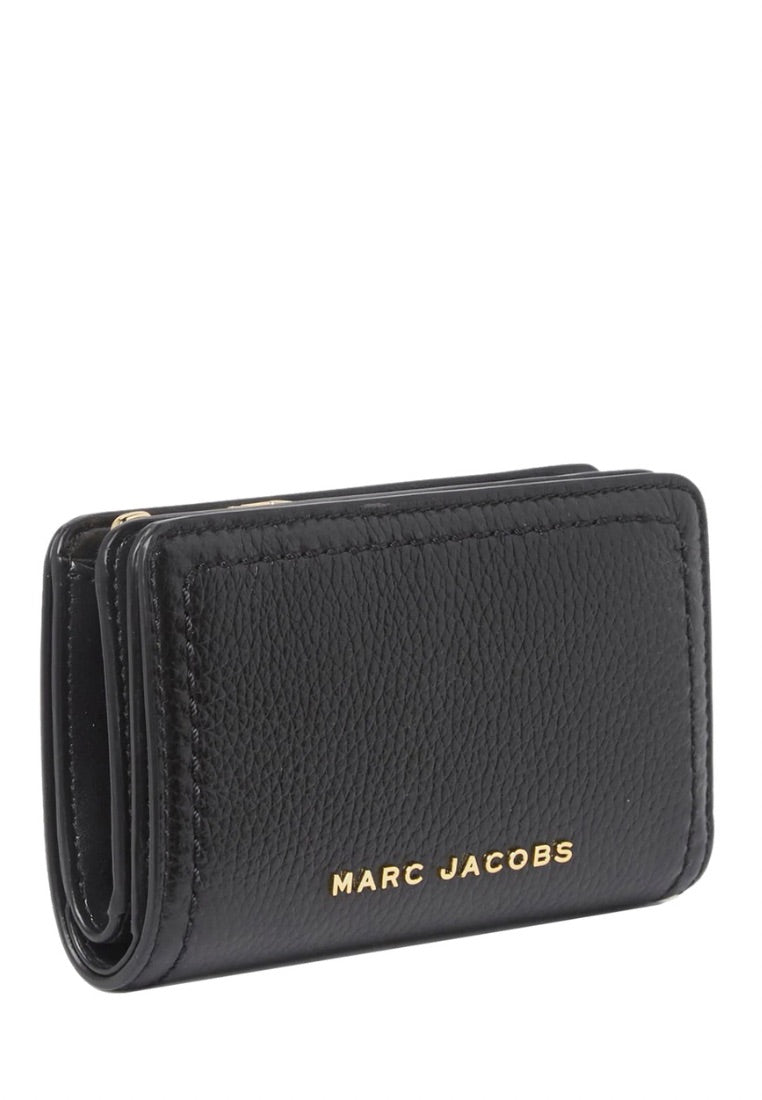 The Marc Jacobs Topstitched Compact Zip Wallet conceals a wealth of card slots & pockets in its luxurious pebbled leather design.
