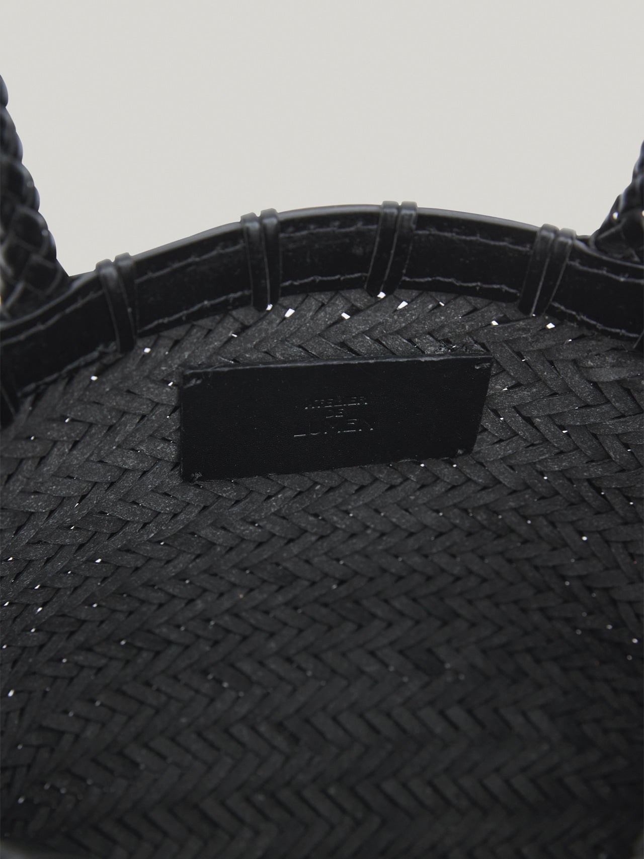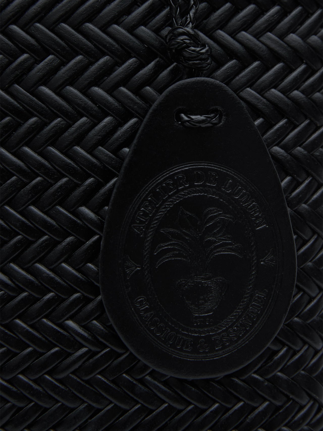 This is a Twig petit bag made by hand weaving strands.The elaborately woven Twigfti bag is made of eco-friendly recycled leather that has been remade from discarded leather. The small and compact Twigg ftie bag has a shape, so it's easy to store and lightweight to use. The belt detail is the point, and Lumen's illustration logo engraved on the hanging Cham adds value to the handcraft.