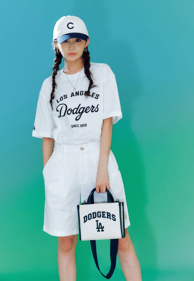 Varsity Basic Canvas S-Tote Bag LA DODGERS cream
