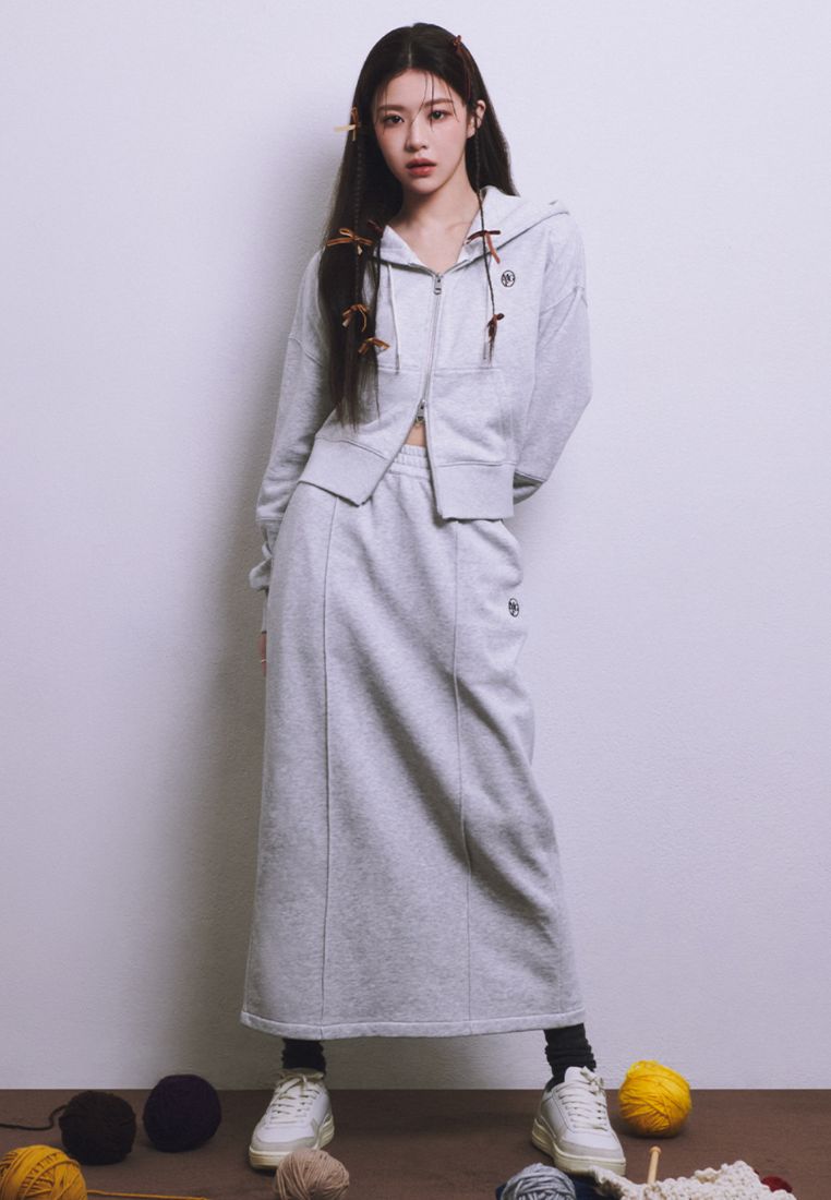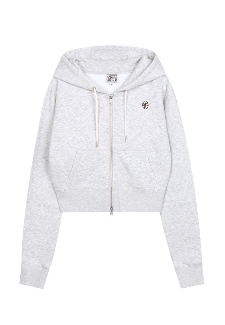 W Circle Logo Crop Hoodie Zipup Light Heather Gray