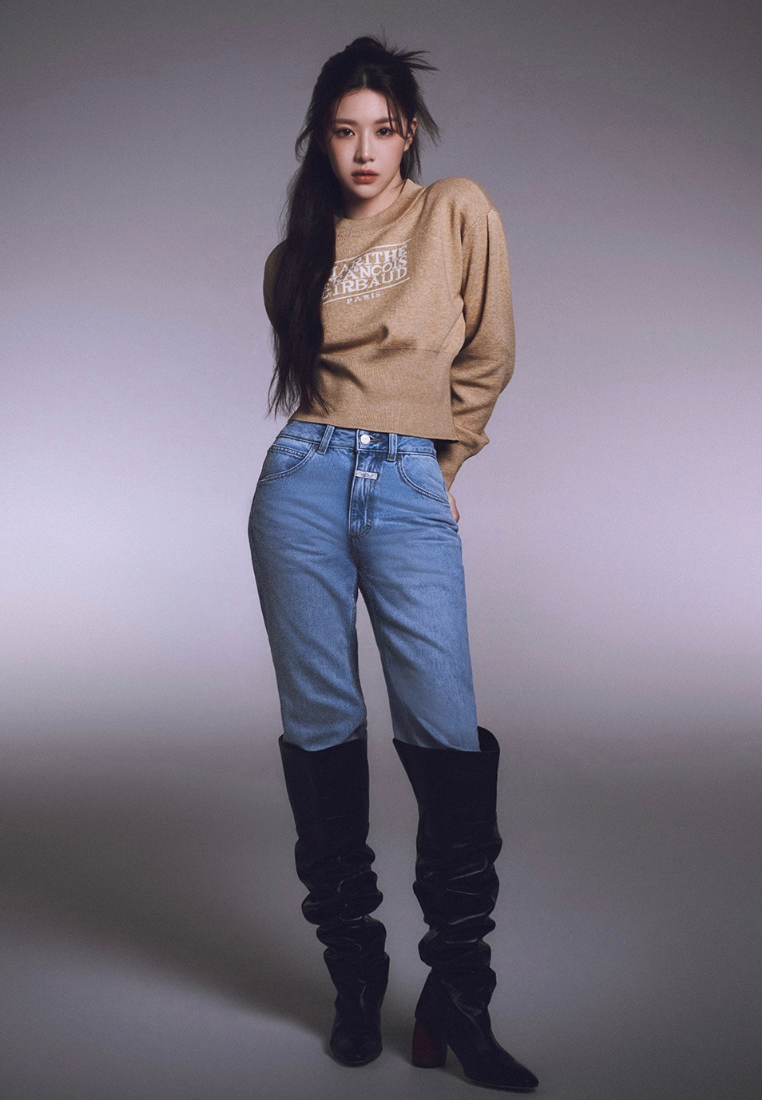 W Classic Logo Crop Knit Beige