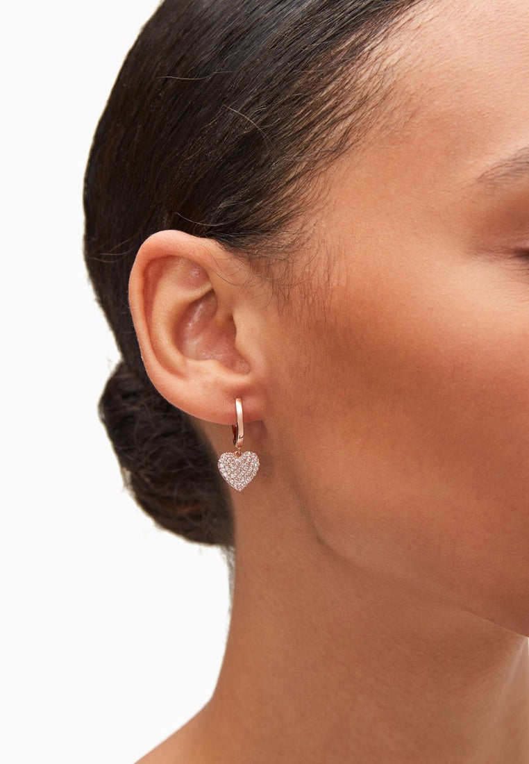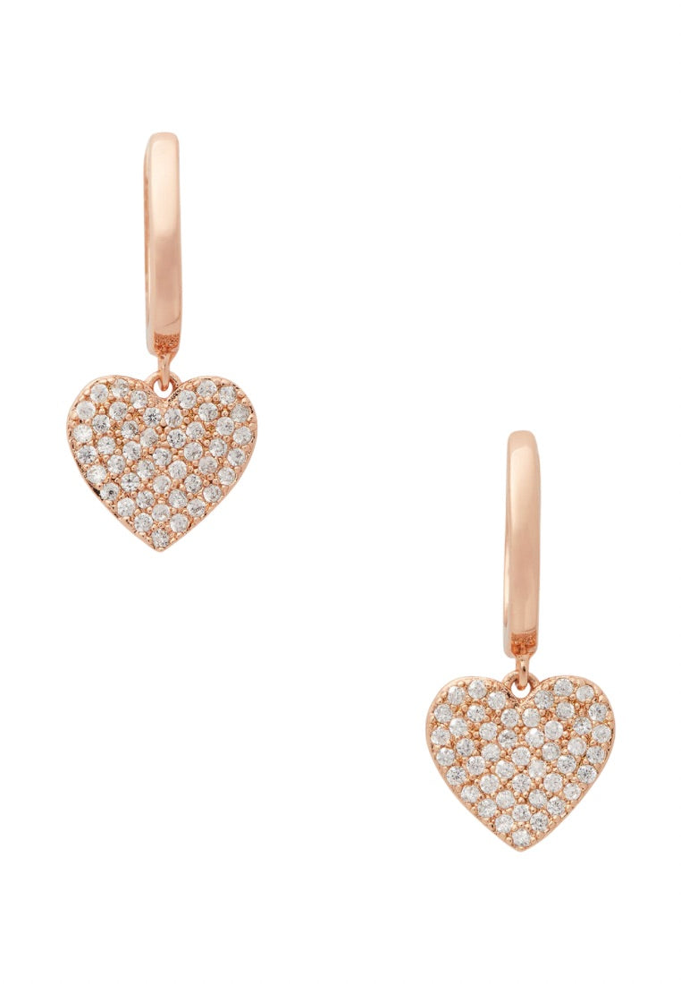 Yours Truly Pave Heart Drop Earrings Clear Rose Gold